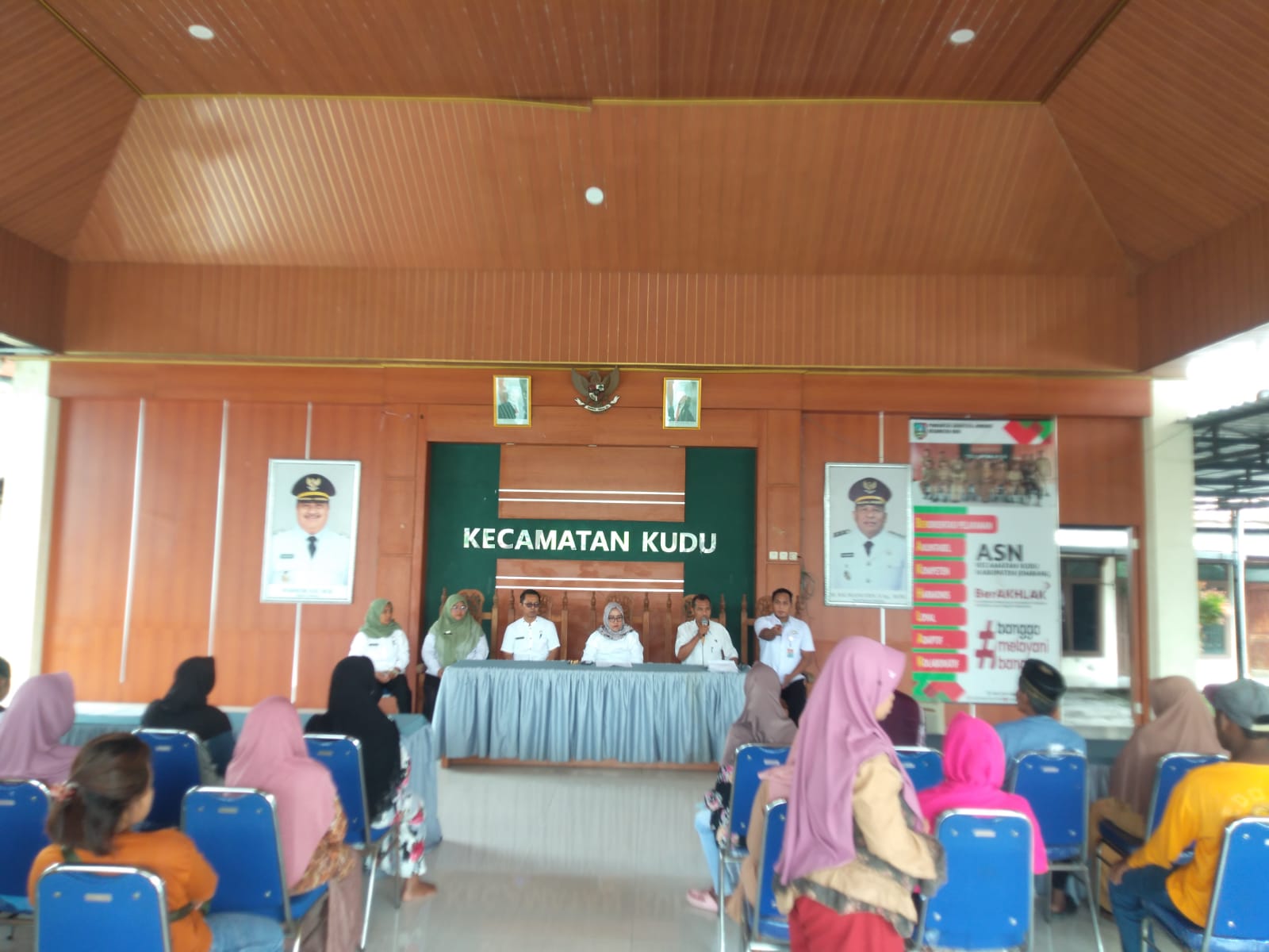 Pada hari Rabu, tanggal 12 November 2025, telah dilaksanakan kegiatan Penyaluran Bantuan Sosial (Bansos) bagi Penyandang Disabilitas di Pendopo Kecamatan Kudu. Kegiatan ini diikuti oleh sekitar 69 orang penerima manfaat yang berasal dari seluruh desa se-Kecamatan Kudu.