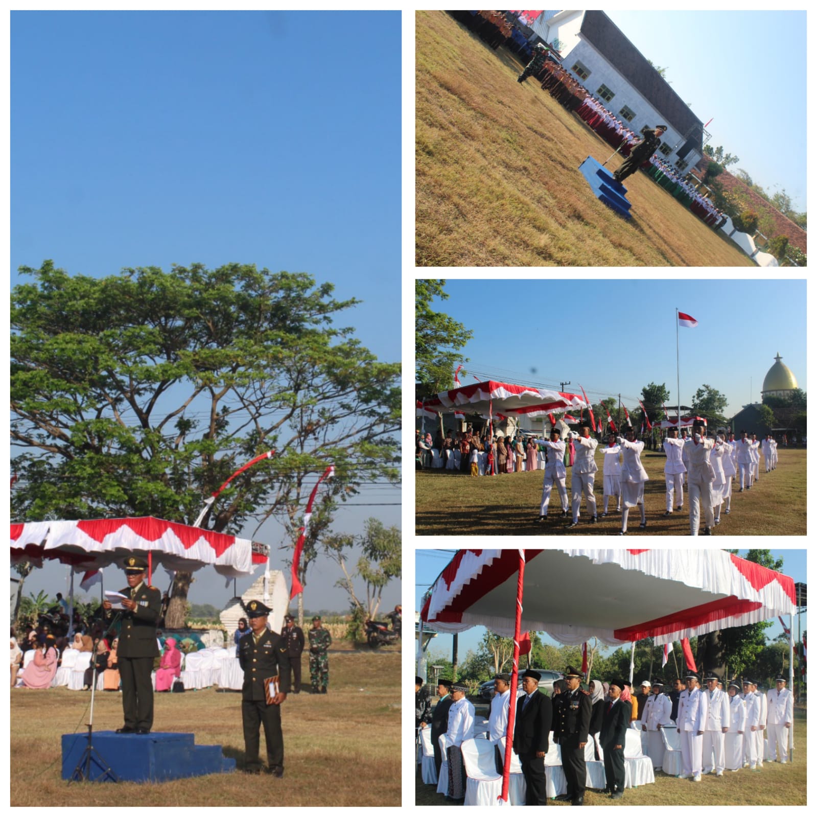 Jombang, Kudu.- Upacara Bendera Memperingati Hari Ulang Tahun Kemerdekaan Republik Indonesia Ke-79 tanggal 17 Agustus 2024 di Kecamatan Kudu yang bertempat di Lapangan 10 Nopember Desa Kudubanjar, Upacara berlangsung khidmat bertindak sebagai Inspektur Upacara HUT RI ke-79 Kapten Infanteri Nasrullah Danramil Kudu. (*)